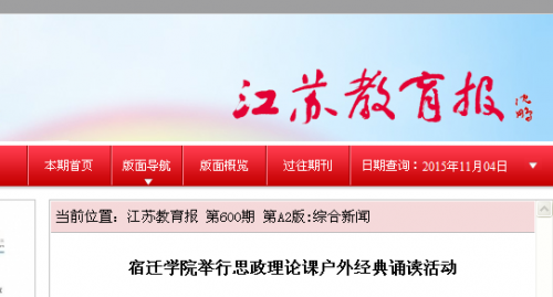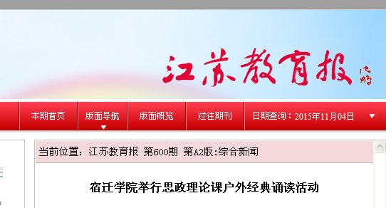 11月4日,《江苏教育报》A2版报道了我校思政理论课户外经典诵读活动,详情请点击: