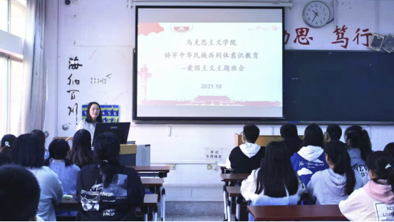 为深入学习贯彻习近平总书记关于民族工作重要论述精神,促进马克思主义学院学生铸牢中华民族共同体意识,10月19日上午9点40分,辅导员邵焕举老师在2116教室召开20级政教专业铸牢民族共同体意识教育主题班会。班会从强化爱国主义教育、深化“四观”教育、创新网络全媒体教育等方面进行铸牢中华民族共同体意识教育。