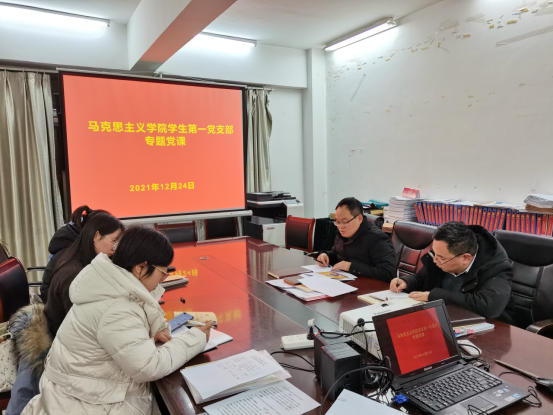 为加强马克思主义学院学生第一党支部的建设,做好专题党课学习,12月24日,学生第一党支部在学院会议室举办专题党课学习会,会议由支部书记邵焕举同志主持,邀请马克思主义学院党总支书记李明建授课。