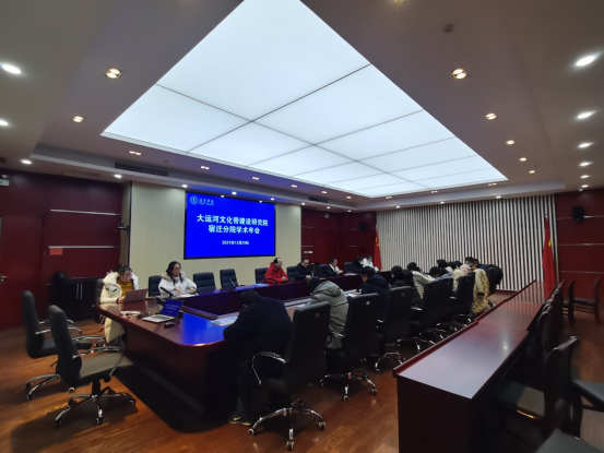 学术交流环节,2021年度课题负责人丁后银、侍非、秦小丽、戴仁卿、杨飞、茆正平六位教师分别就大运河诗歌英译、运河生态城市建设、运河生态环境保护、运河特色小镇建设、运河民俗体育文化开发、运河生态社会建设等方面,从不同角度展开对大运河文化带建设研究成果介绍。