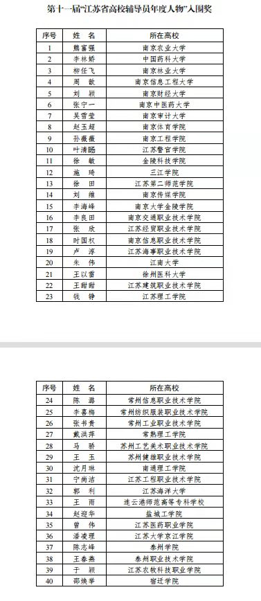 日前,省委教育工委、省教育厅公布第十一届“江苏省高校辅导员年度人物”推选结果。此次推选按照事迹感人、表现突出、影响力大、示范性强的标准,坚持公平公正、培优选优的原则,经学校推荐、专家初评、风采展评、实地考察、集中审议和公示,共推选出第十一届“江苏省高校辅导员年度人物”10人、提名奖获得者19人、入围奖获得者40人。我校马克思主义学院辅导员邵焕举老师获第十一届“江苏省高校辅导员年度人物”入围奖。