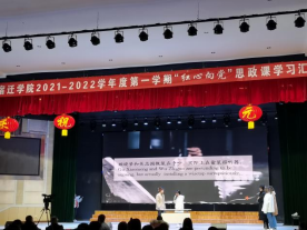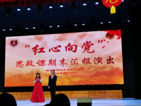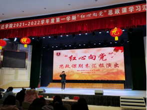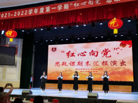 为隆重庆祝中国共产党成立100周年,弘扬伟大建党精神,深刻认识红色政权来之不易、新中国来之不易、中国特色社会主义来之不易,培养学生知史爱党、知史爱国的责任感和使命感,1月2日下午,我校在大学生活动中心举办2021-2022学年度第一学期“红心向党”思想政治理论课学习汇报演出活动。