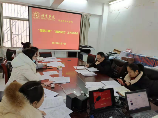 2月7日上午11点30分,马克思主义学院召开“三联三融”“服务宿迁”工作研讨会。学院院长兼党总支书记李明建、副院长唐献玲出席会议,各基层教学组织负责人、辅导员、行政管理人员参加会议。