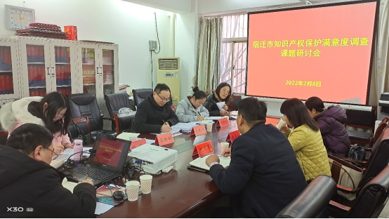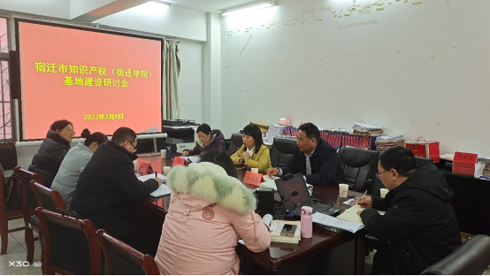 市知识产权局知识产权保护处包秋冬处长对宿迁市知识产权(宿迁学院)培训基地建设、市知识产权研究院共建工作进行介绍;对“市知识产权社会满意度调查”项目研究的内容、调查对象、数据分析、调研报告等方面提出建议。