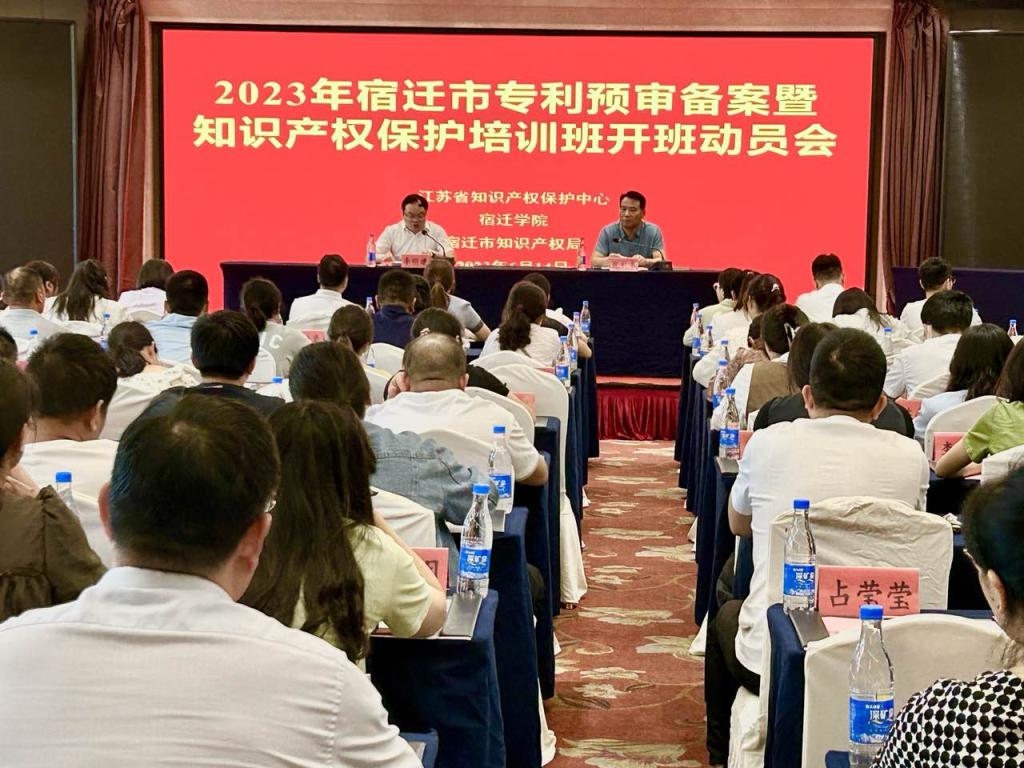 为贯彻落实《宿迁市“十四五”知识产权发展规划》和《宿迁市关于强化知识产权保护的实施方案》要求,进一步促进专利代理机构、备案企事业单位高效使用专利预审备案系统,提高专利撰写质量,加快专利授权确权,助力全市智能制造和新材料产业高质量发展,6月14日,江苏省知识产权保护中心、宿迁市知识产权局、宿迁市知识产权(宿迁学院)培训基地联合举办2023年宿迁市专利预审备案暨知识产权保护培训班。来自宿迁市区、各县区150多家企业和知识产权代理机构,共计780多名代表参加线上线下同步培训。
