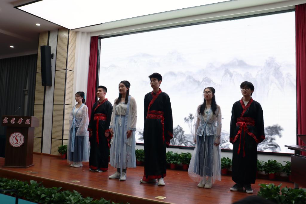 宿迁学院马克思主义学院同学们展示了“中华民族共同体”课程经典诵读《诗经•小雅•蓼莪》节目,该作品曾获首届江苏百万学子“云诵读”优秀作品表彰,他们抑扬顿挫的诵读,灵动传神的表演,受到与会者好评。