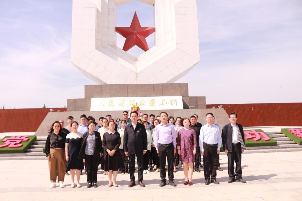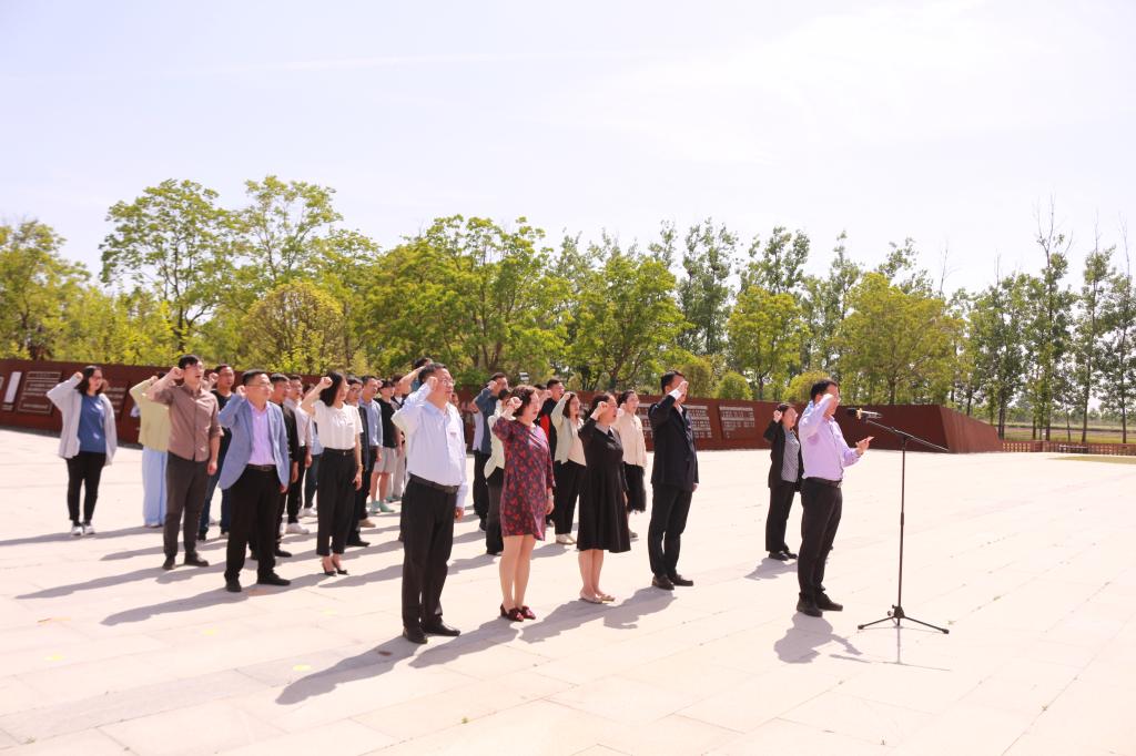 在备课会前,全体人员开展红色文化研学,集体参观宿北大战红色教育基地。在纪念广场奏唱国歌,侍旭副校长向烈士纪念碑敬献花篮,全体默哀,姜强强院长领读入党誓词;师生集体参加微党课《人民的力量》学习。