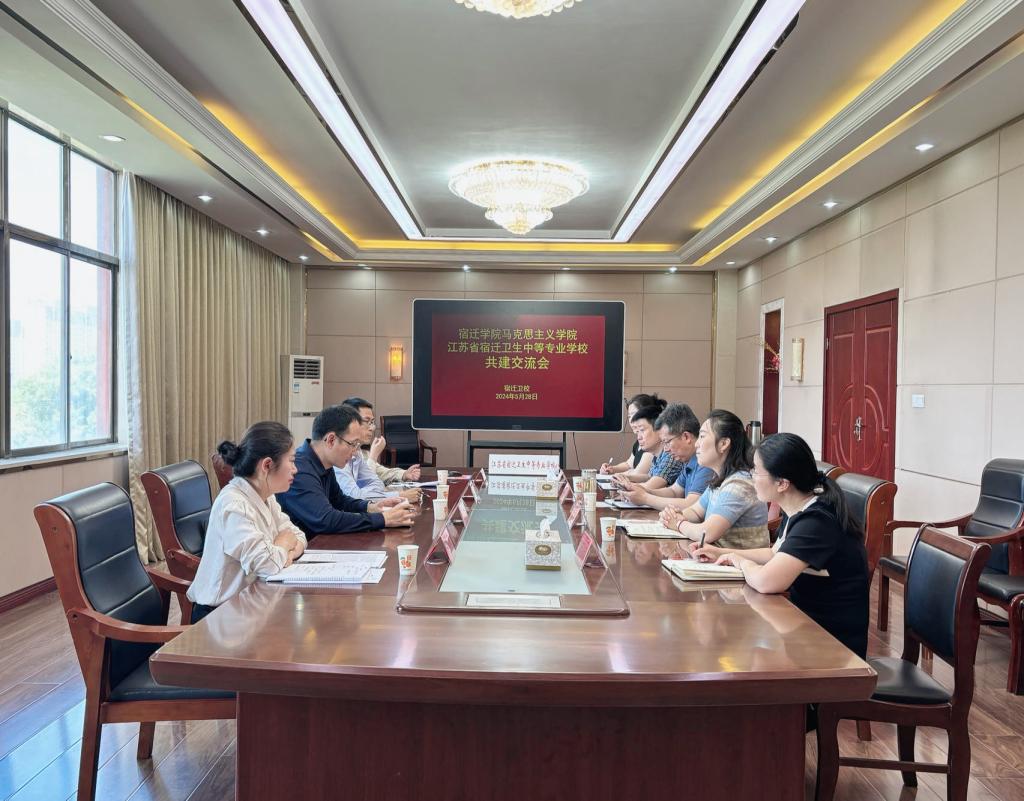 会上宿迁卫校党委书记、校长张超,校党委委员、副校长潘靖等有关领导、老师表示热烈欢迎。潘靖介绍了卫校的教学、科研情况。张超就卫校申报江苏联合职业技术学院分院等未来发展目标战略规划做了发言,并建议卫校与宿迁学院马克思主义学院在师资上互补、科研上互助、党建上互联、社会活动上互助。