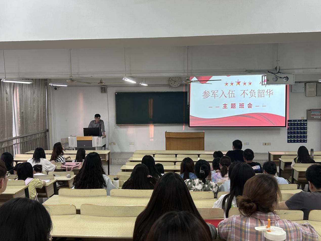 一堂“参军入伍,不负韶华”主题班会。辅导员莫坤老师从应征报名时间、征集对象及条件、应征入伍基本流程、大学生入伍优惠政策等四个方面带领大家学习了最新的大学生入伍政策,让同学们对于参军入伍这一选择有了更加深刻的了解。
