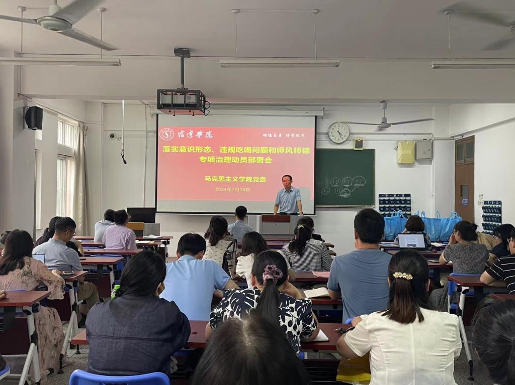 7月10日下午,马克思主义学院在1号楼1104教室召开专项治理工作布置会。院领导班子、全体教师参加会议。