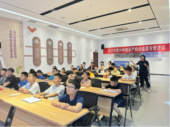 8月4日,为帮助青少年了解知识产权知识、提升创新素质和创造能力,2024年宿迁市青少年夏令营公益活动在沭阳县文化馆举行。此次活动由宿迁市知识产权培训(宿迁学院)基地主办,40名青少年营员参加。在为期一天的活动中,他们参加讲座学习、深入了解了知识产权的重要性。