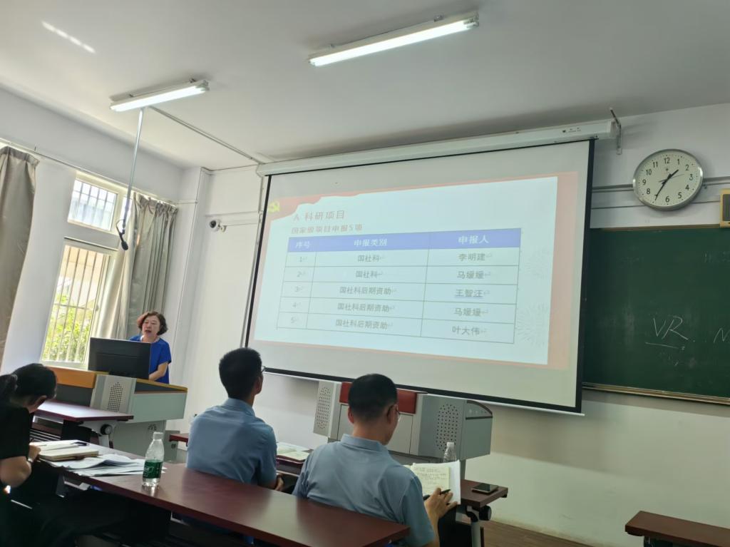 副院长陈丽杰对上半年科研工作作简要总结,同时布置学院下半年科研项目、科研经费、论文论著、决策咨询报告等工作。