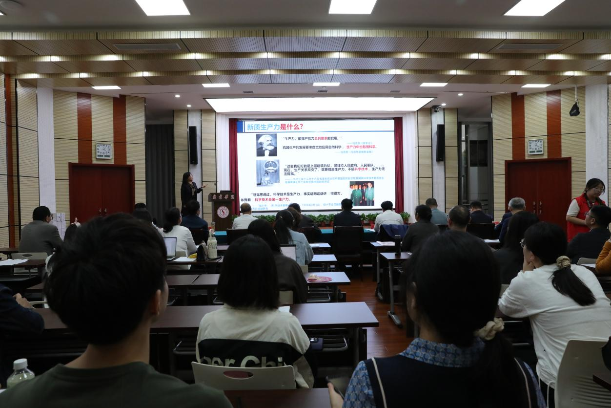 在研讨会的第二阶段,进行了五个主题的教学展示。宿迁学院思政课教师罗前娥副教授以“新质生产力是什么?”为题、董千千老师和两位四年级小学生以“七十五载长歌奋进 绘就经济快速发展奇迹”为题、辅导员宋欢以“青春之力共筑国家网络安全屏障”为题、宿迁市百姓名嘴洪声以“新四军在江苏”为题、宿迁市红色宣讲员祖丽娟等以“战火家书铁骨柔情”为题分别进行教学展示。教学展示中师资多元,教学内容生动,教学方法多样,赢得了与会者的广泛赞誉。此外,曹洪军、史献芝分别就“形势与政策”课教学、“大思政课”教学拓展等作学术报告。