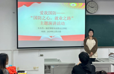为深入学习贯彻习近平总书记关于加强全民国防教育的重要指示精神,培养学生的爱国主义精神,铸牢关心国防、热爱国防、建设国防、保卫国防的思想共识,11月15日,马克思主义学院于1115教室开展“爱我国防——国防之心,就业之路”主题演讲活动,马院部分同学参与此次活动。