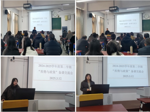 为深入贯彻落实新时代思政课建设要求,提升“形势与政策”课教学质量,系统推进宿迁学院“形势与政策”课程教学改革,2025年3月12日下午,马克思主义学院副院长唐献玲、“形势与政策”课教研室主任徐古祥以及全体任课教师共同举行2025年春季学期“形势与政策”备课交流会。会议由教研室主任徐古祥主持。