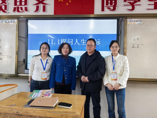 联培研究生何星霖和郝若雯两名同学分别以《认识生命》《探问人生目标》为题进行了现场授课,两名研究生准备充分,教学重点突出,教学环节清晰,展现了良好的专业素养和教学潜质。课后,钟吾初级中学指导教师高鹏对两名同学的教学展示进行了细致点评。他充分肯定了实习生在课程设计、课堂互动方面的亮点,同时在教学内容的深度挖掘、教学节奏的精准把控以及课堂生成性问题的有效引导等方面提出了宝贵建议,助力两位同学教学实践能力的进一步提升。