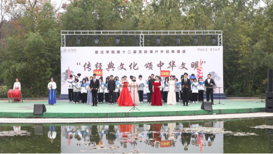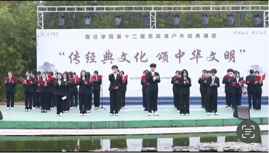 为传播弘扬中华优秀传统文化,赓续中华文脉,引导学生在经典诵读中启智润心、坚定“四个自信”,11月15日,宿迁学院第十二届“传经典文化,颂中华文明”思政课户外经典诵读活动在校园海豚湾隆重举行。