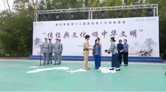 活动期间,马克思主义学院罗敦洲书记、艺术传媒学院乔永刚书记、马克思主义学院唐献玲副院长等分别为优秀诵读集体与团队颁奖。25政教1班、25中文2班等班级荣获“优秀诵读集体”;25小教1班、25中师1班等团队荣膺“优秀诵读团队”,以荣誉见证青春与经典的共鸣。