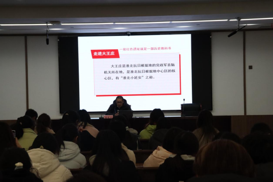 为传承红色基因、厚植爱国情怀,进一步推进课程教学改革,12月1日,宿迁学院马克思主义学院24政教1、2班师生,走进宿迁市泗洪县大王庄红色文化教育基地,开展《红色宿迁专题》实践研学活动。此次活动由马克思主义学院副院长唐献玲带队,课程组教师吕甜甜、张福贵等老师、马院24政教1、2班全体同学参加此次活动。