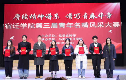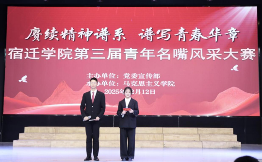 为深入学习贯彻习近平新时代中国特色社会主义思想和党的二十届四中全会精神,深入挖掘中国共产党人的精神谱系内涵,推动宿迁学院“红色文化润心田”十大工程建设走深走实,12月12日,我校在大学生活动中心举办第三届“赓续精神谱系,谱写青春华章”青年名嘴风采大赛。