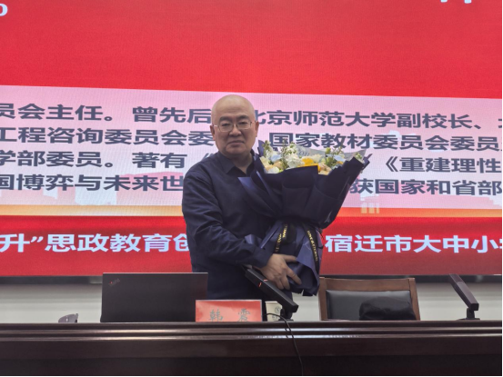 为深入落实立德树人根本任务,持续推进大中小学思政课一体化建设,3月21日,马克思主义学院联合“旭日东升”思政教育创新团队、宿迁市大中小学思政一体化建设联盟,邀请北京师范大学韩震教授在求索楼报告厅举办“求是大讲堂(第五十六期)”专题讲座。宿迁学院党委常委、宣传部部长李明建主持,马克思主义学院师生及宿迁市思政课教师代表参会学习。