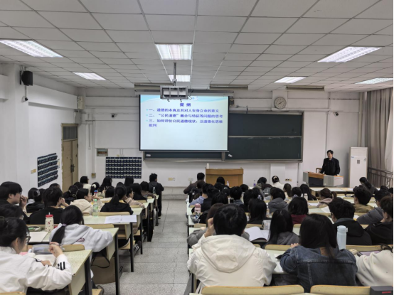 为夯实学生道德理论基础,培育正确的道德认知与价值观念,推进“伦理学”课程内涵发展,提升“宿院优课”建设水平与育人实效,4月3日,马克思主义学院特邀河海大学马克思主义学院二级教授黄明理老师,在2-209教室开展题为“公民道德信仰与泛道德化思维批判”的专题讲座。马院2024级全体学生及部分思政课教师参加,副院长唐献玲主持活动。