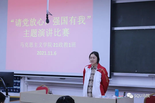 我院于2021年11月6日在1号楼教室举行“请党放心,强国有我”主题演讲班级初赛。参加此次比赛的有我院辅导员邵焕举老师、21政教全体同学和部分20级同学。