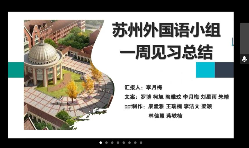 汇报会上,宿迁市实验学校、宿迁苏州外国语学校、宿迁经开区初中、厦门路实验学校、富民路实验学校等5个见习小组分别汇报了本周各见习学校的见习经历、心得体会以及下周见习计划。经过一周的学习和锻炼,同学们在知识积累和实践能力方面均有了长足的进步,同时,他们深深感受到,师范类大学生不仅应努力加强自身专业知识和技能的学习,更重要的是应不断提高自身的综合素质和综合能力,学会如何做一名“四有”好老师。